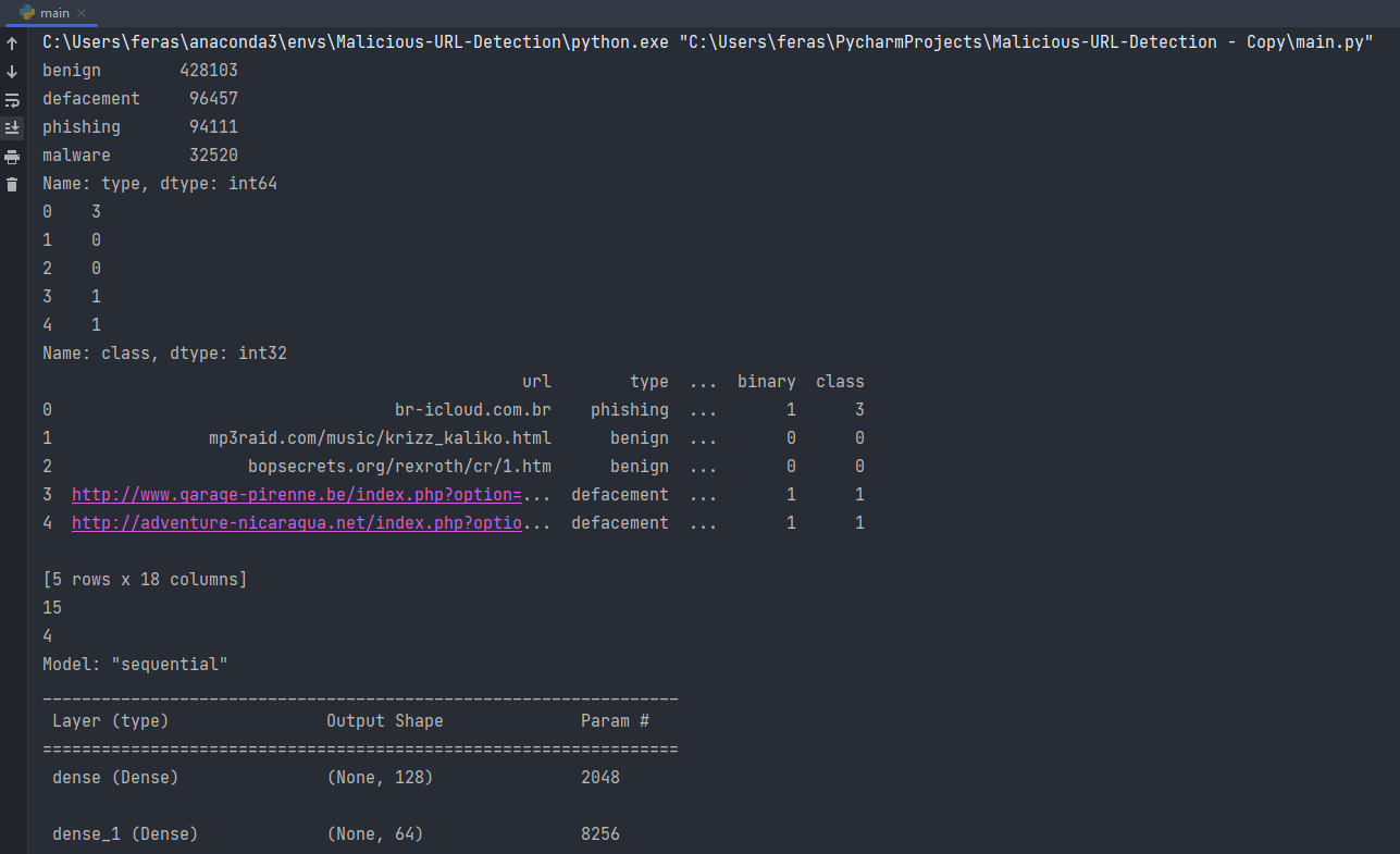 As we can see here after encoding classes into integers for example phishing class will be represented as integer 3 and benign as integer 0 and defacement as integer 1 and malware as integer 2.
